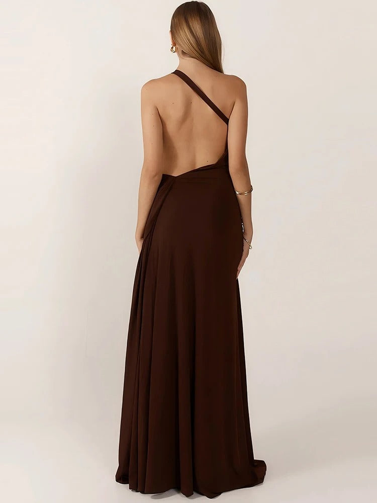 Introducing Brun Sucré 6 — Muse. Designed to inspire desire and admiration, this exclusive silhouette drapes like a dream with sultry asymmetry, luxe detailing, and a curve-loving finish. Whether it's a rooftop night or red carpet moment - you are the muse.