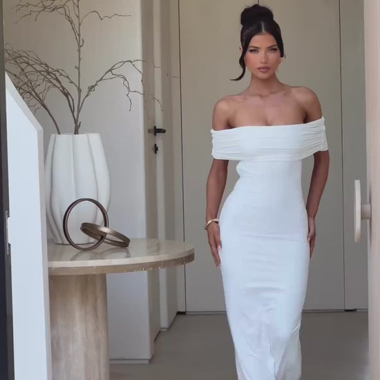 Classic Off-Shoulder Design – A timeless neckline that exudes confidence and grace.